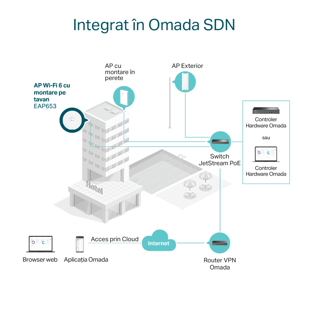 Punct de acces fără fir TP-LINK EAP653, 574 Mbps, 2402 Mbps, Alb
