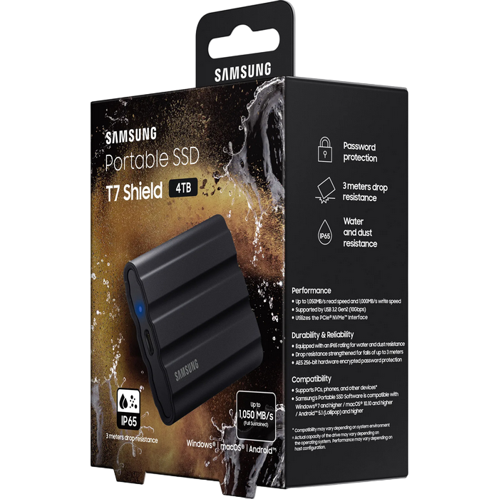 SSD portabil extern Samsung Portable SSD T7 Shield, 4 TB, Negru (MU-PE4T0S/WW)
