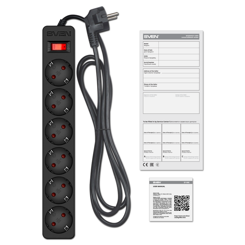 Prelungitor electric SVEN SF-06E, 6 Prize, 5m, Negru