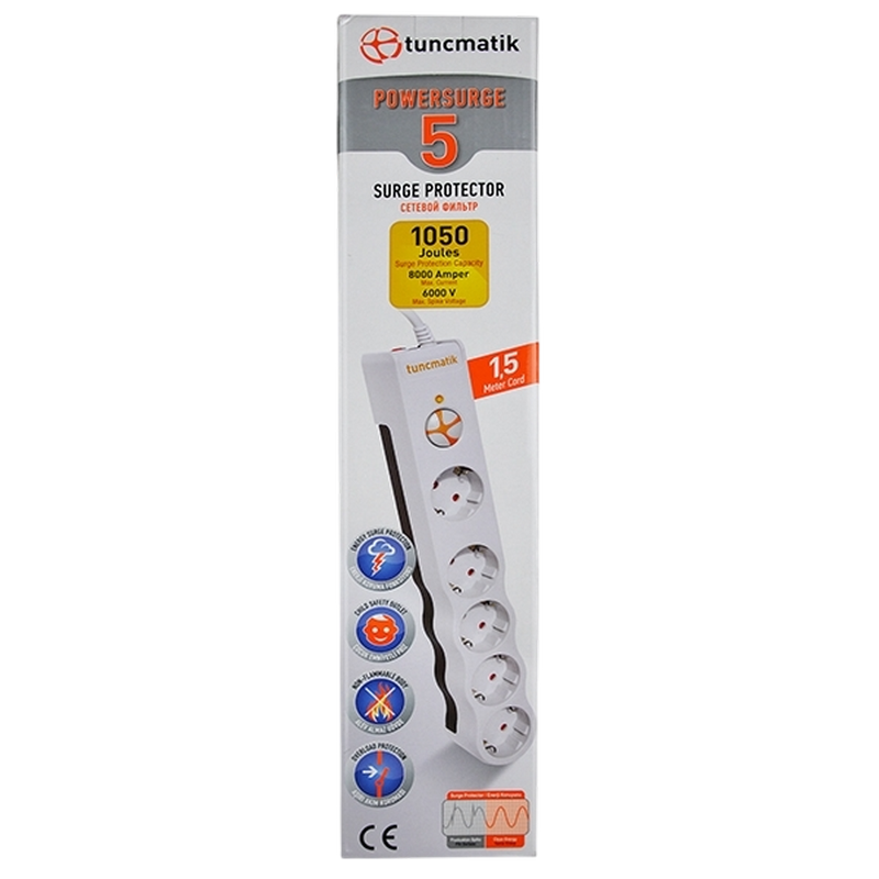 Prelungitor electric Tuncmatik TSK6134, 5 Prize, 1,5m, Alb