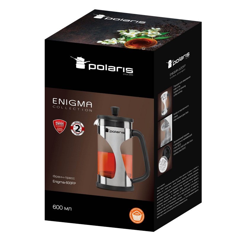 Cafetiera French Press Polaris Enigma-600FP, 0,6L, Negru | Inox