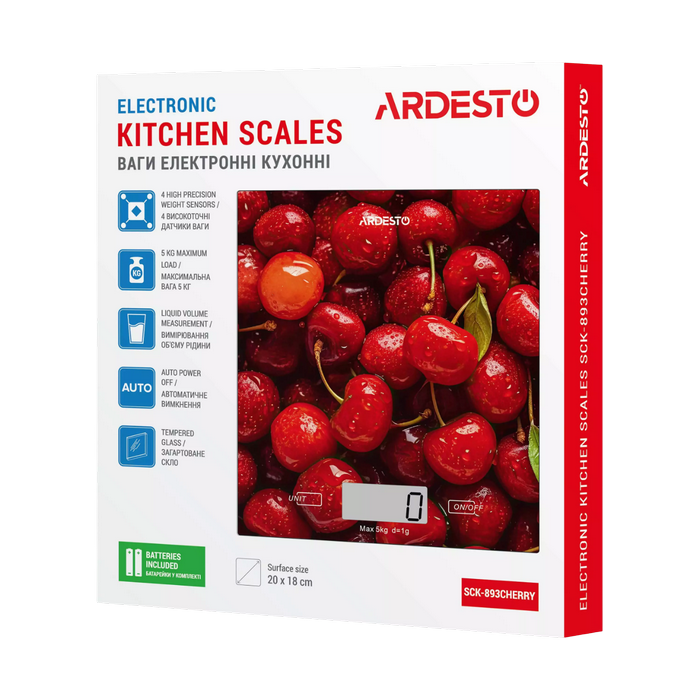 Cântar electronic de bucătărie Ardesto SCK-893, Cireașă