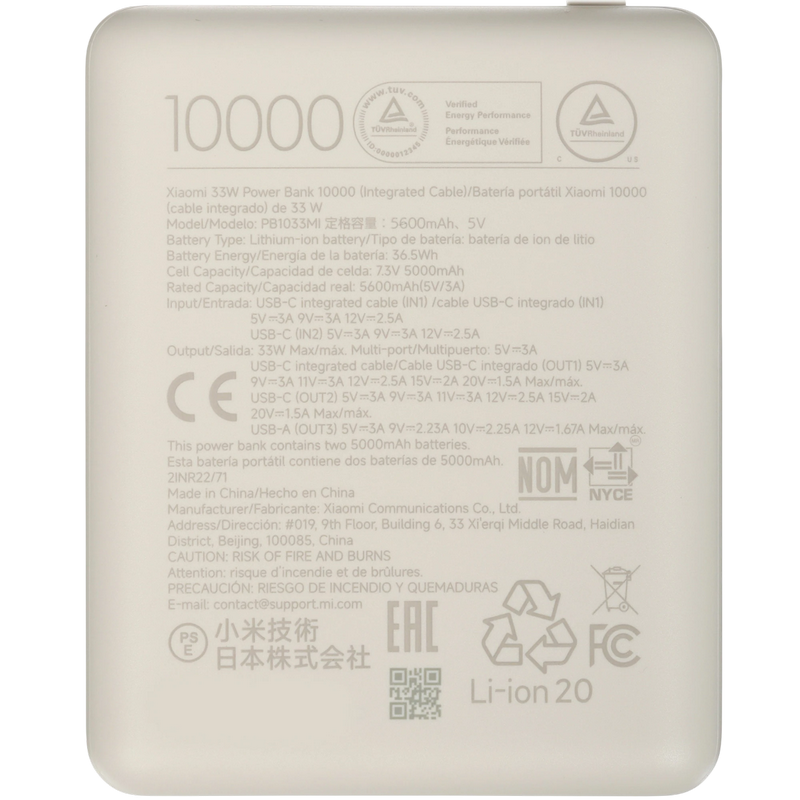 Acumulator extern Xiaomi BHR9333GL, 10000mAh, Alb