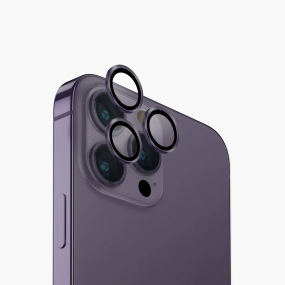 Uniq Lens Protection Camera for iPhone 14 Pro/14 Pro Max, Purple, ofera o protectie durabila si eleganta pentru camerele dispozitivelor iPhone 14 Pro/14 Pro Max.