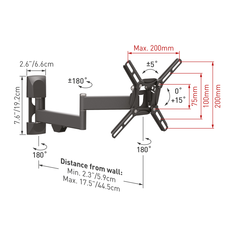 Suport TV de perete BARKAN 2400, Negru