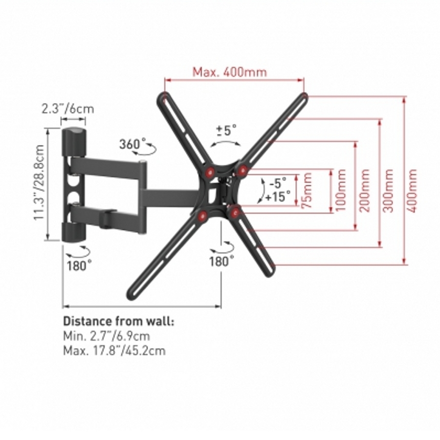 Compatibilitate cu suportul VESA: 75x75, 100x100, 100x200, 200x100, 200x200, 200x300, 300x300, 300x400, 400x200, 400x300, 400x400